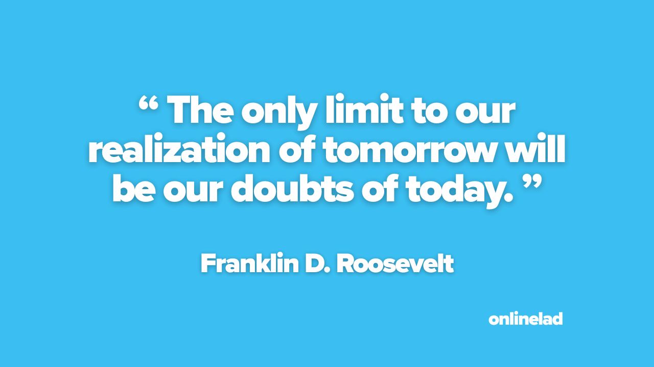 “The only limit to our realization of tomorrow will be our doubts of today.” At first glance, the words feel calm, almost reassuring. There is no bravado here, no chest-thumping motivation. Instead, Franklin D. Roosevelt offers something far more unsettling and far more powerful: the idea that the future is rarely blocked by circumstance, but by what we quietly tell ourselves when no one else is listening.